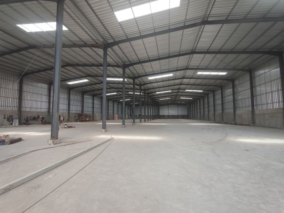 Tinggi gudang: samping 9.3 meter (clear) / 13 meter (roof)
