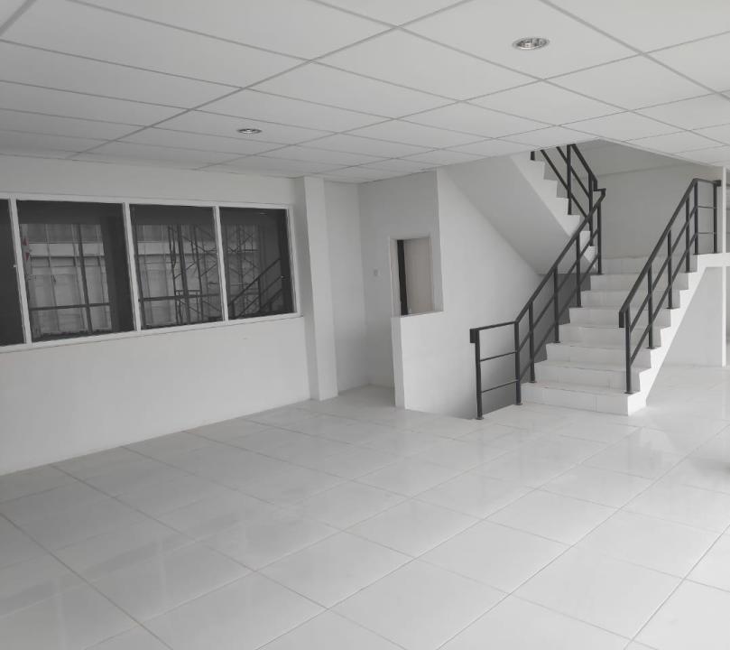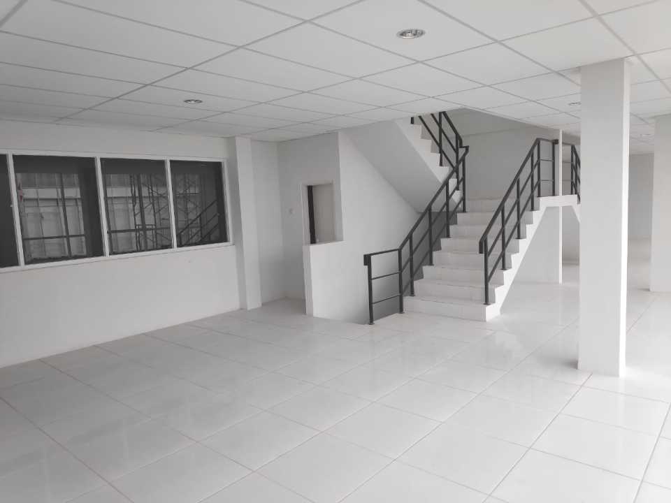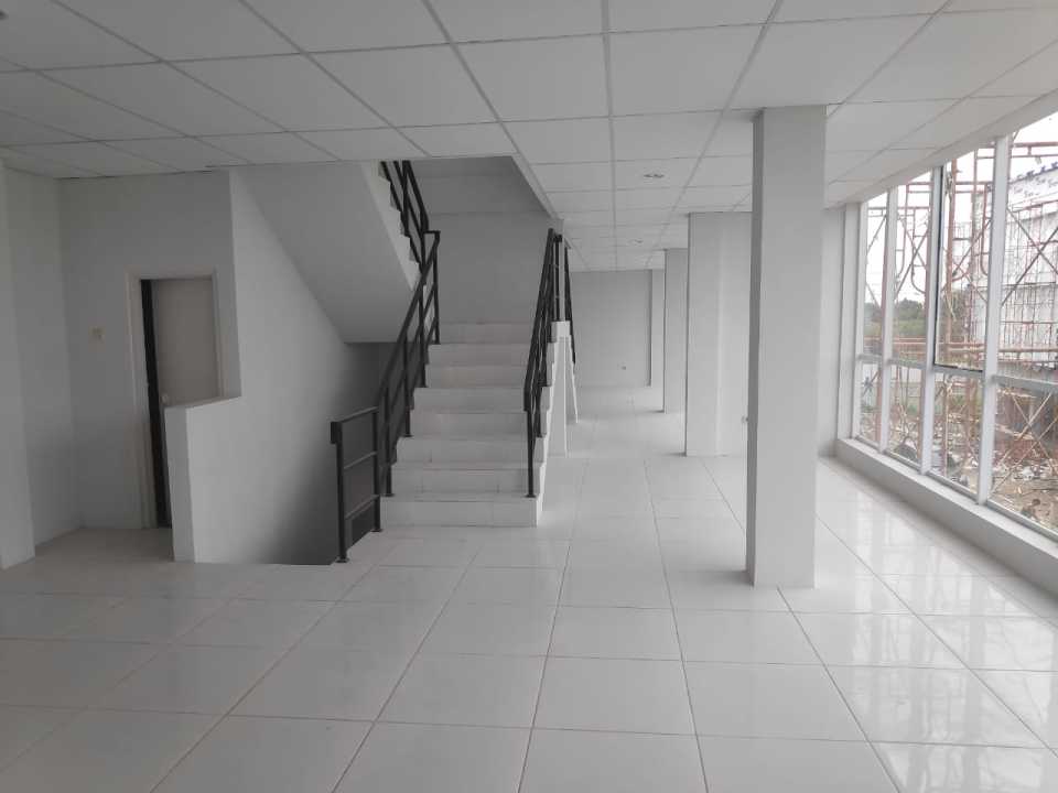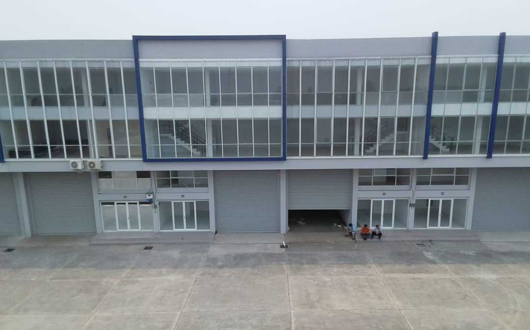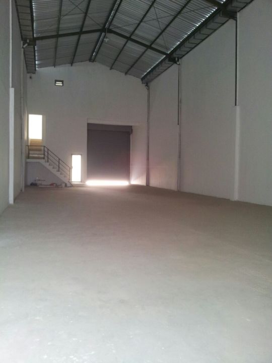 Bangunan 3 lantai + mezzanine, tinggi gudang hingga 10 meter.