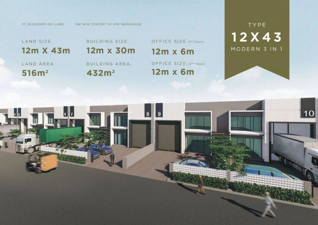 Luas tanah 12x43 m2/516m2