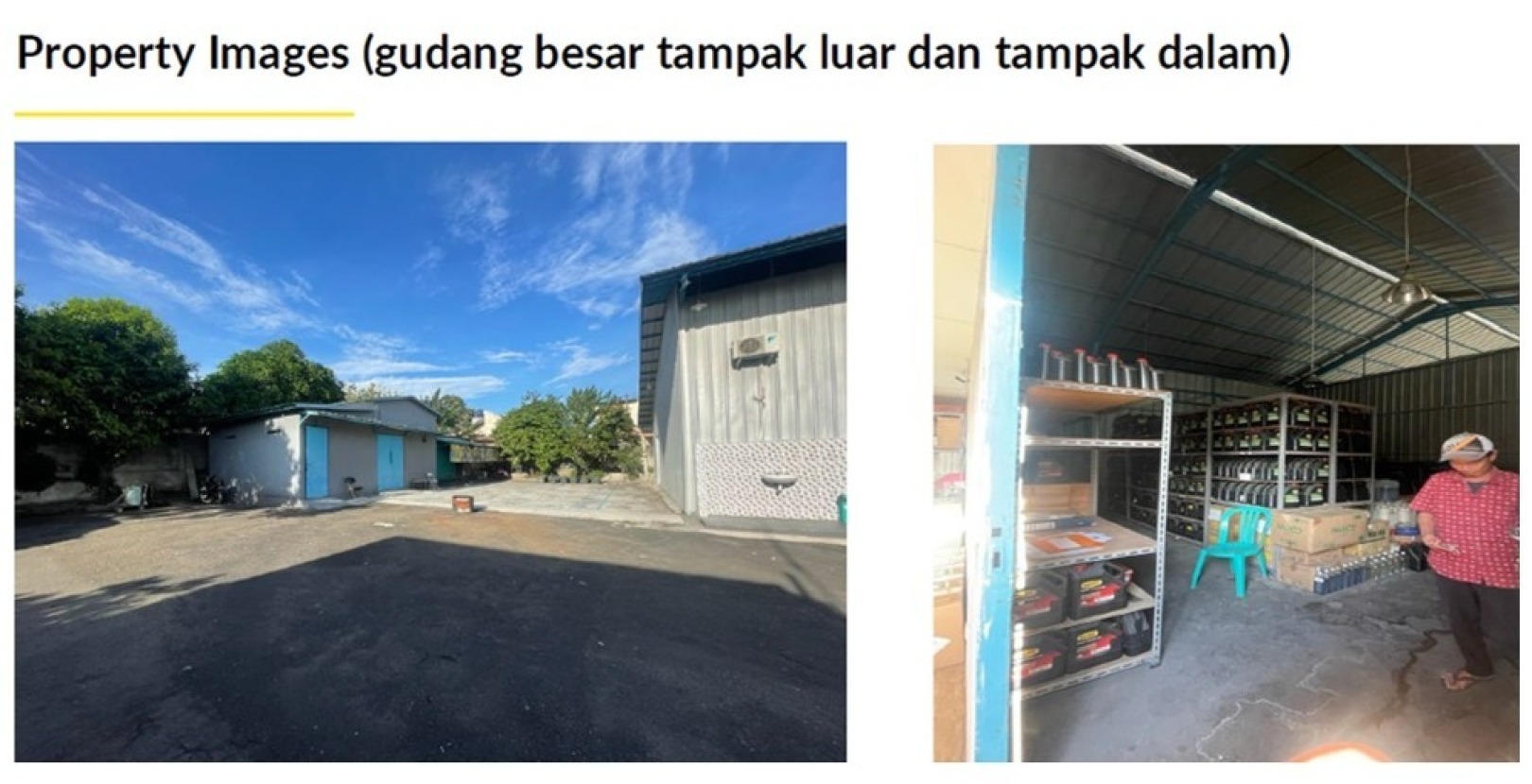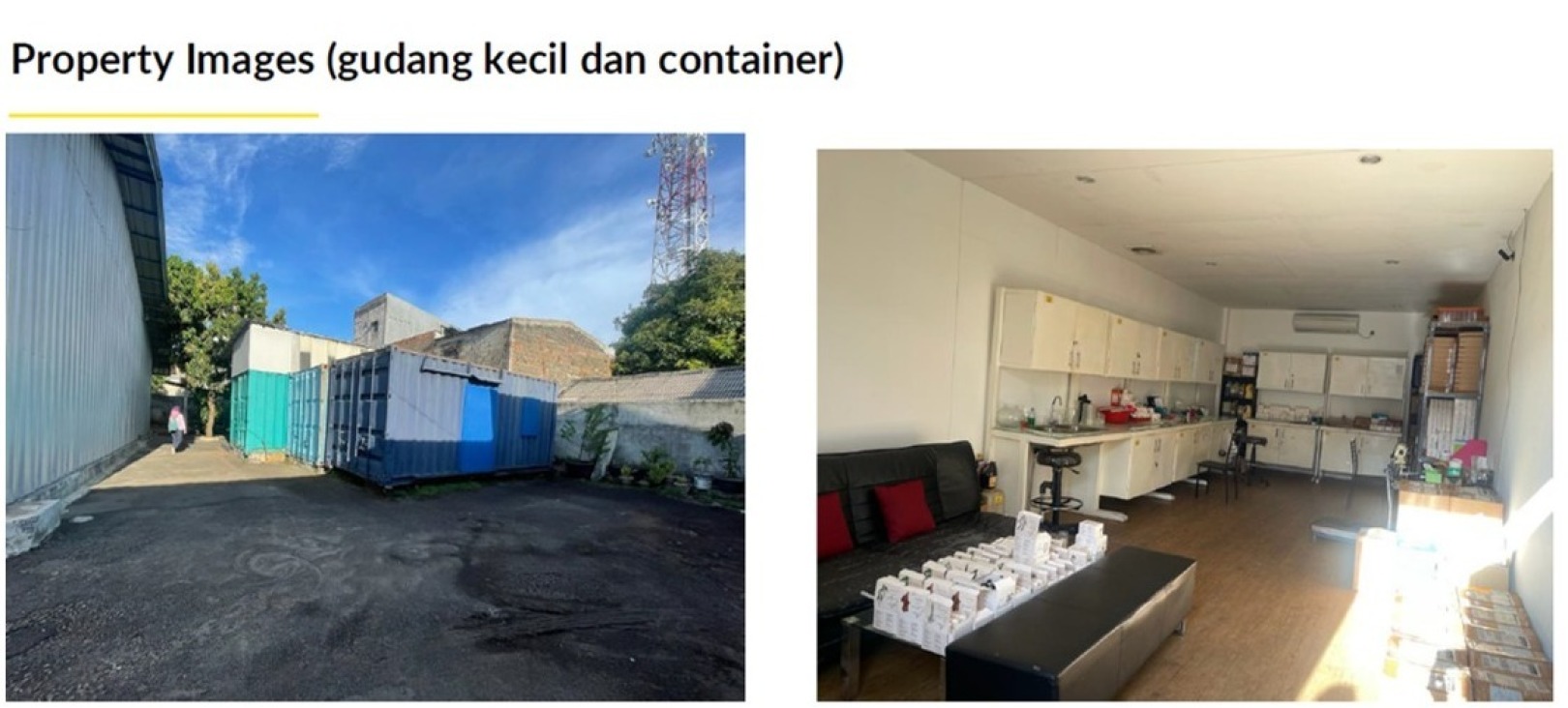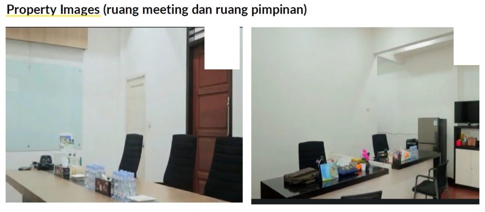 Ada ruangan meeting, ruang pimpinan, ruang staff, gudang besar dan kecil, dan mess karyawan