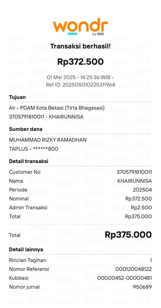 Perbulan ( bulan pertama)