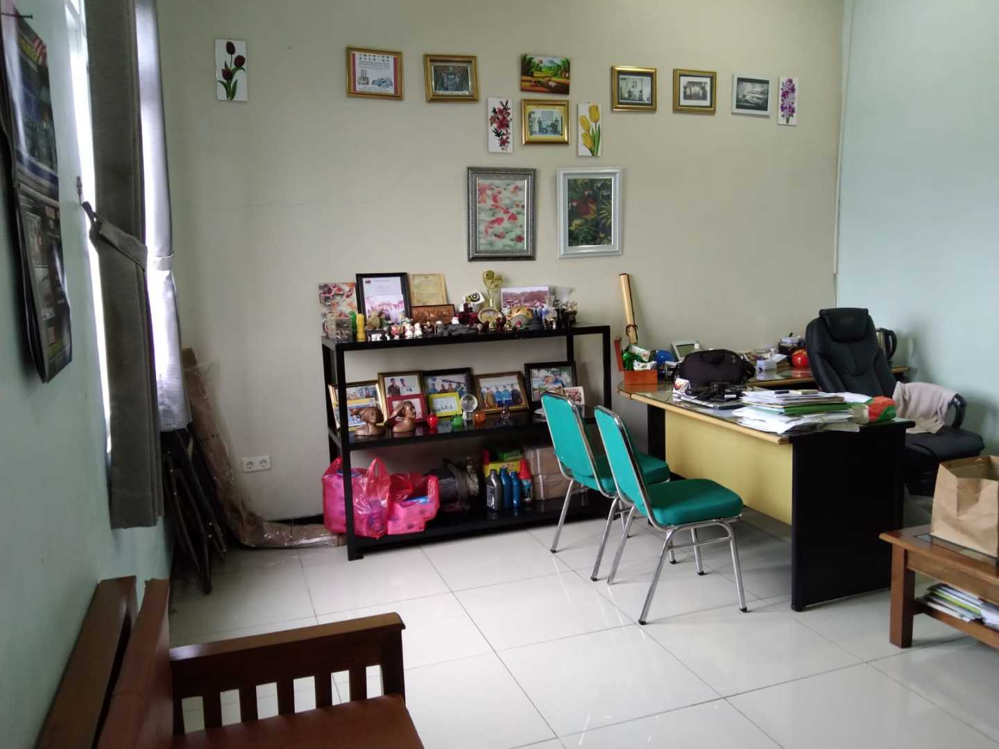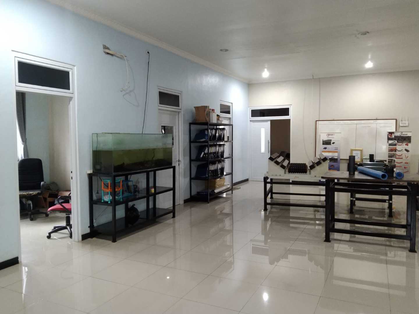 Fasilitas : ada workshop, gudang, mess karyawan, parkir mobil, taman dengan kolam ikan, gazebo, air dari tanah, toren air, dapur, ruang meeting, ruang makan, ruang kerja 6 , ruang tengah utk display barang, lobby